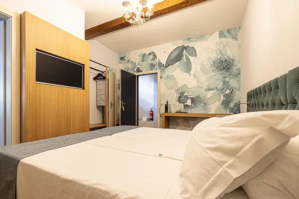 Dopo una serata passata nelle sale del ristorante, le camere recentemente ristrutturate e climatizzate del Garni offrono un luogo accogliente in cui fermarsi, ideale per essere in centro già alle prime luci dell’alba. Durante le calde serate estive la terrazza fra i tetti vi regalerà momenti di spensierato relax.